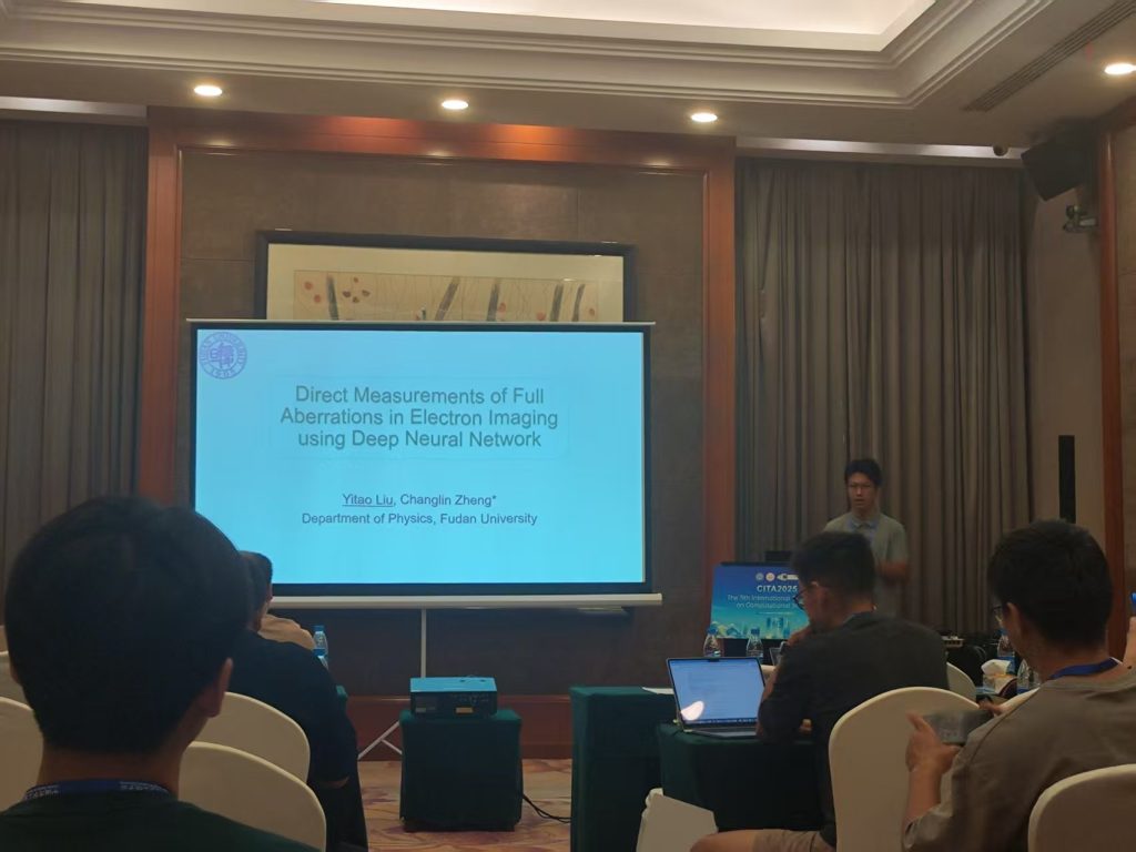 刘祎涛和李贤同学参加第五届国际计算成像会议。刘祎涛同学做了题为”Direct measurments of full aberrations in electron imaging using deep neural network”的口头报告。