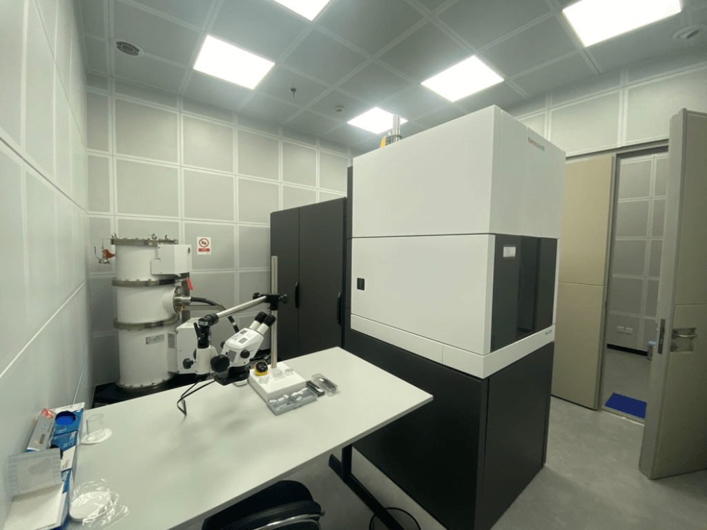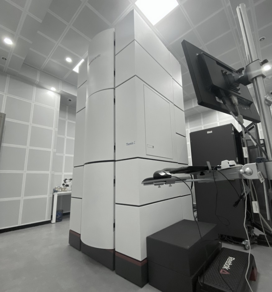 实验室拥有超稳定的电子显微镜工作环境。实验室位于江湾物理楼地下一层西北角,远离地铁10号线。地基由一米厚的混凝土和物理楼西北部分整体浇筑构成,其超重质量有效的抵御了长江三角洲地区软土质层的低频振动。电镜同时安装有ivis主动减震器。themis电镜实验室温控系统由安置于墙面的多面冷辐射面板构成,温度波动< 0.1oC/24 h。Talos实验室安装有精密空调。两间实验室均为6面体硅钢/低碳钢构成的被动磁屏蔽系统,以及由德国Stefan Mayer主动消磁器,磁场环境< 10 nT p-p。 实验室同时安装有吸声材料,以进一步降低噪声对电镜原子成像的影响。